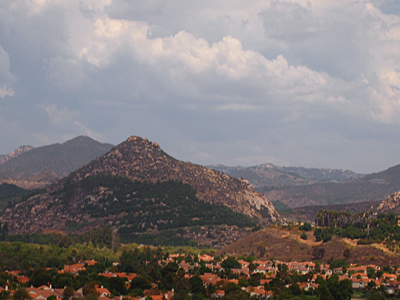 The temperature hit 104 degrees today. In Alpine, California, where we had breakfast, it was not only hot, but also humid. The skies were a little threatening all day, and it even rained a little. Because of the weather, I had to give up on the idea of taking more vintage postcard pictures around San Diego (I only got one). I hope I can take the rest when we return to California in October. I took all my photographs today out of the car window at 70+ miles an hour.