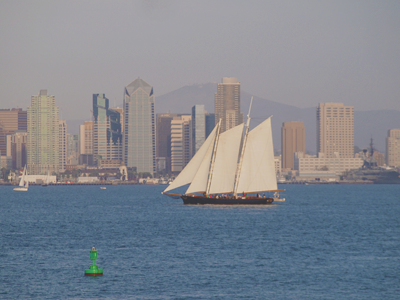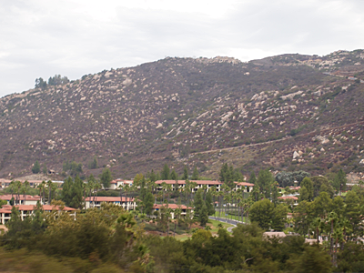 After driving over the Ortega Highway, we decended to Lake Elsinore, where the thermometer reached 102 F (39 C), the highest temperature of our trip so far. In San Diego, the temperature was comfy again.